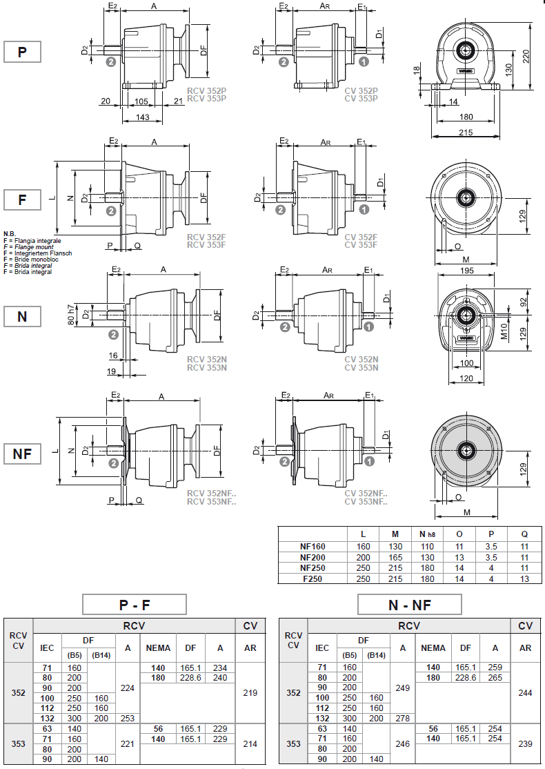 Габаритные и присоединительные размеры RCV 352-353